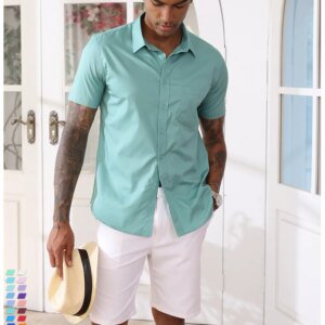 TACVASEN Breathable Short Sleeve Dress Shirts Mens Slim Fit Casual Business Button Down Formal Shirt W/ Chest Pocket Male Cloth