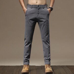 Spring Autumn Men‘s Suit Pants Slim Business Office Elastic High Waist Black Grey Classic Korean Trousers Male Plus Size Z40