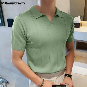 Men Shirt Solid Color Knitted Lapel Short Sleeve Korean Style Summer Men Clothing Streetwear 2023 Casual Shirts S-5XL INCERUN