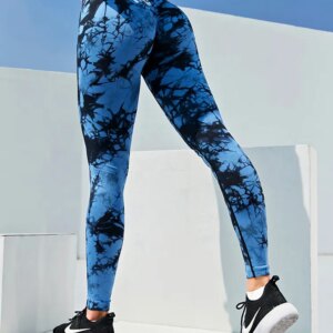 CHRLEISURE Tie Dye Push Up High Waist Leggings Stretch Athletic Women Sexy Pants Casual Seamless Gym Knitting Leggings Femme
