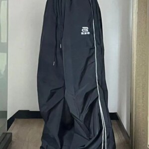 HOUZHOU Black Wide Leg Parachute Pants Women Vintage 90s Oversized Casual Trousers Female Gorpcore Harajuku Fashion Streetwear