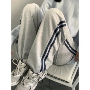 HOUZHOU Casual Sweatpants Women Korean Style Classic Sports Pants Oversize Summer Joggers Baggy Gray Black Striped Wide Trousers