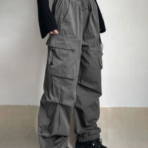 HOUZHOU Harajuku Oversized Cargo Parachute Pants Women Streetwear Vintage Y2k Hip Hop Wide Leg Joggers Baggy Sweatpants Techwear