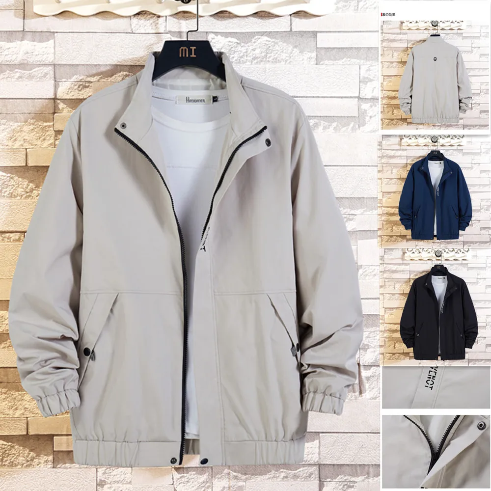 2021 Spring/Autumn Men’s Safari Style Jacket Trend Jacket Men’s Solid Color Casual Letter Sports Bomber Jacket Mens Clothing