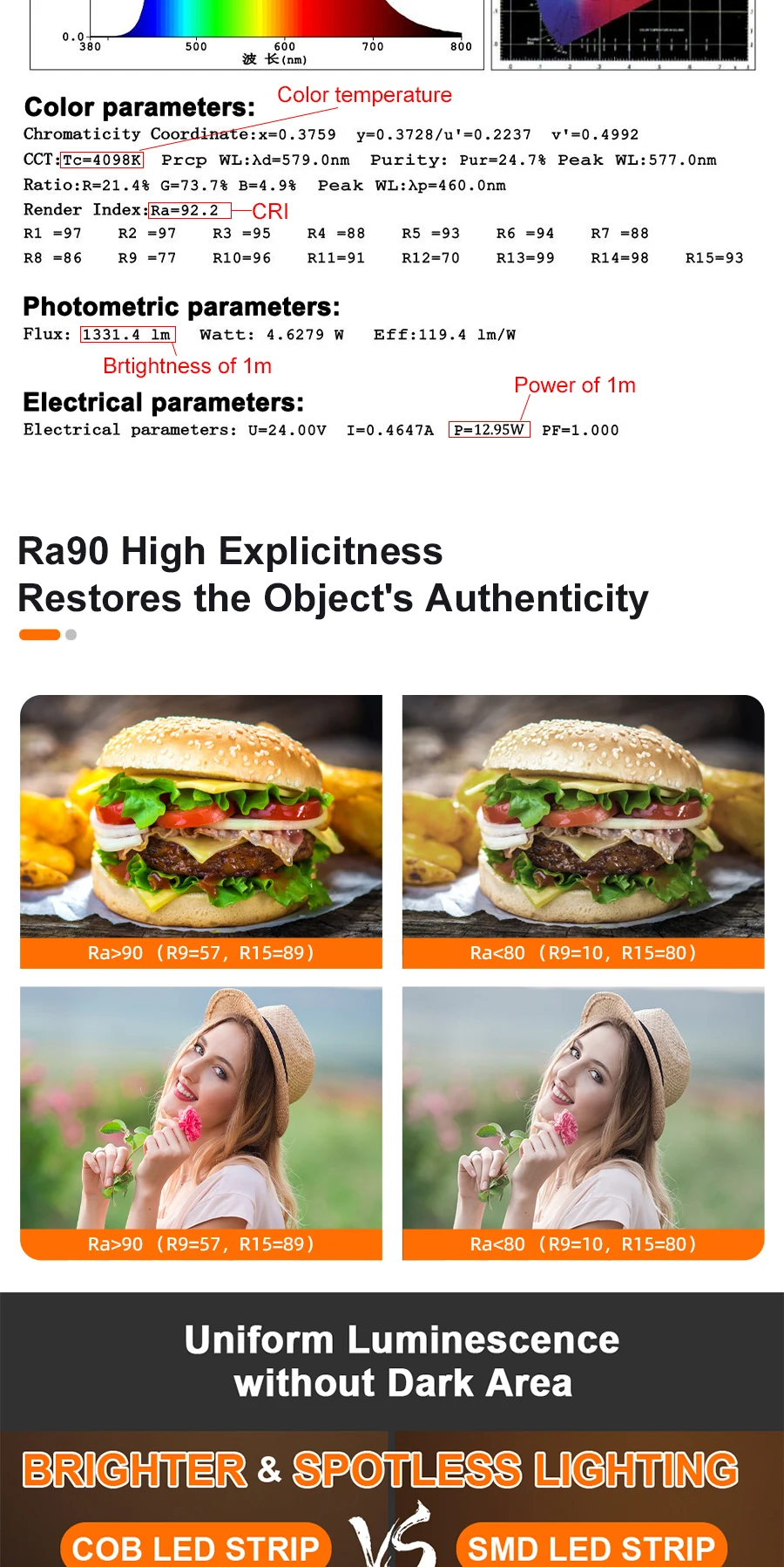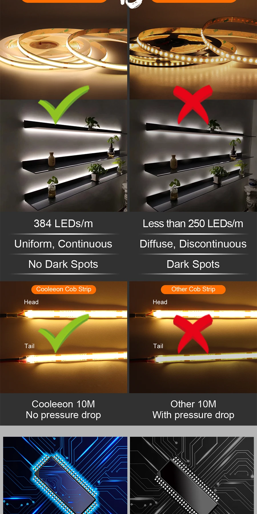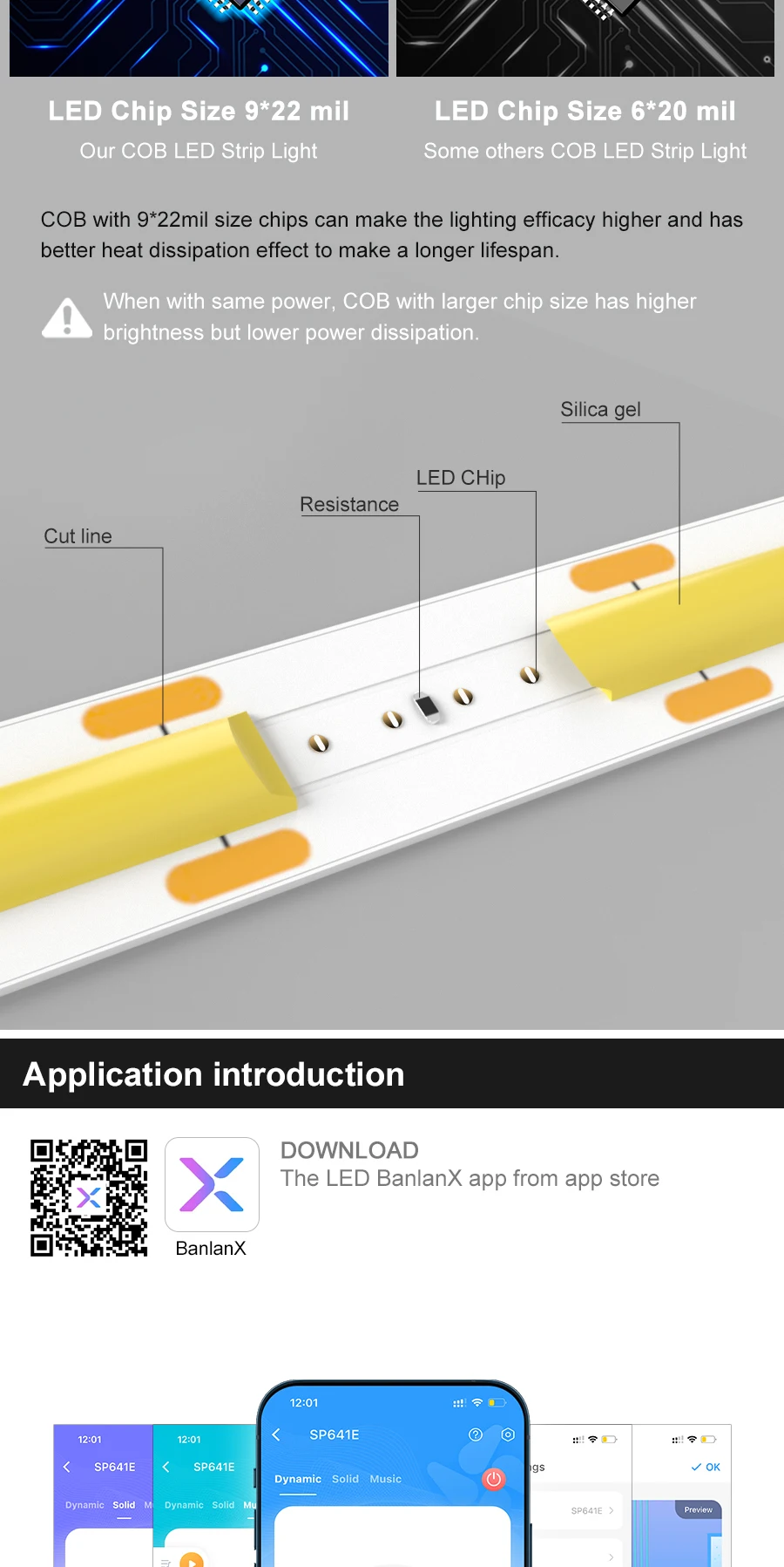 1. The COB LED strip cannot be connected to 110V or 220V directly, must add the 24V power supply.