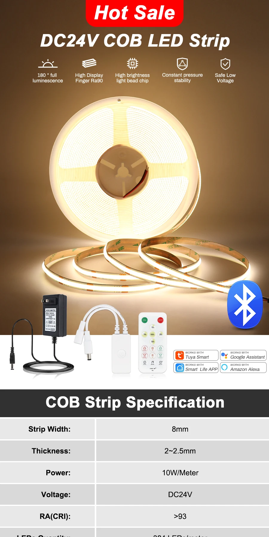 5m 10m COB LED Strip Light Kit BT 2.4G RF Controller APP Remote Control RA90 LED Ribbon Tape 3000K 4000K 6000K for Home Decor