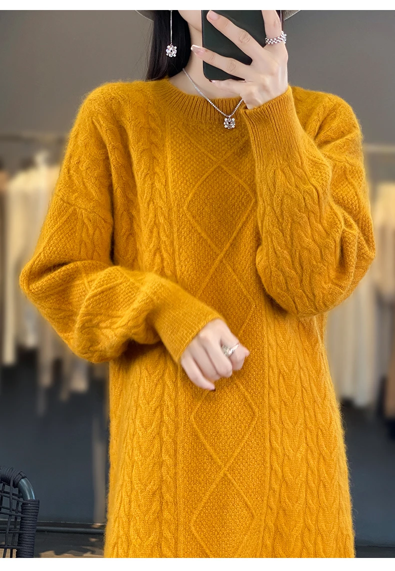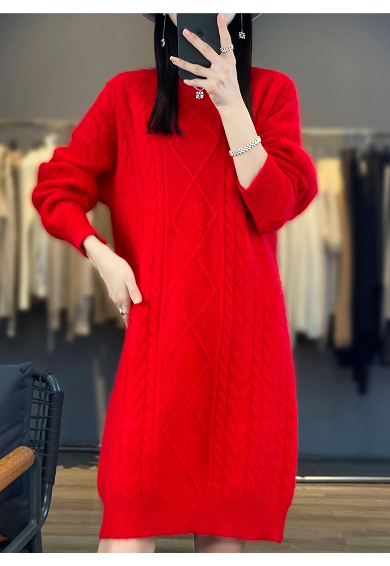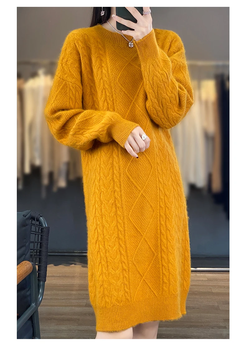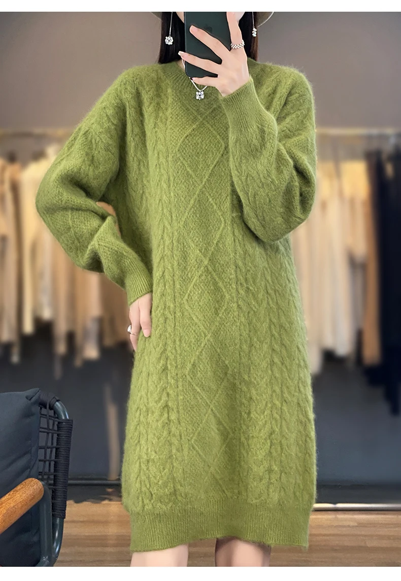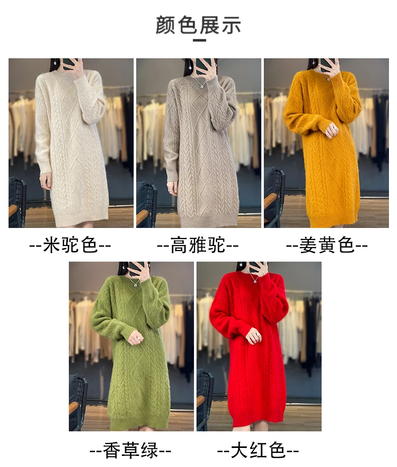 Be the first to review “DjzDsm Women’s 100% Mink Cashmere women’s round neck Thick warm solid color knit dress”