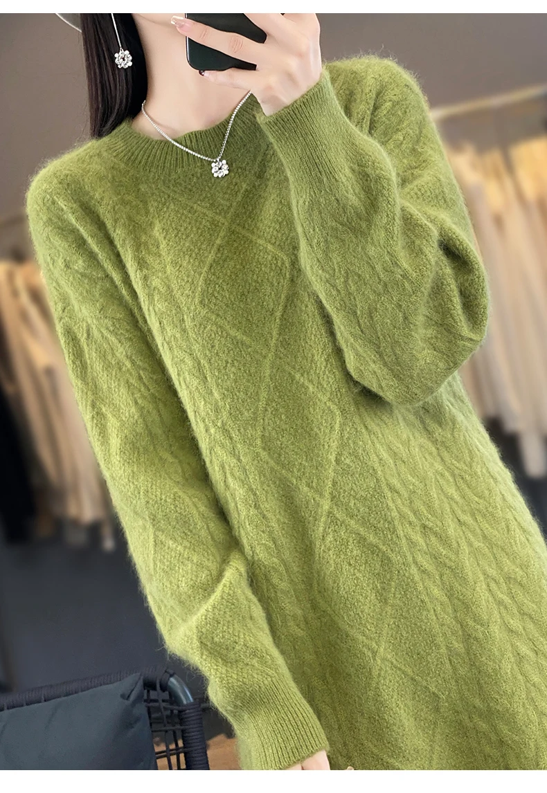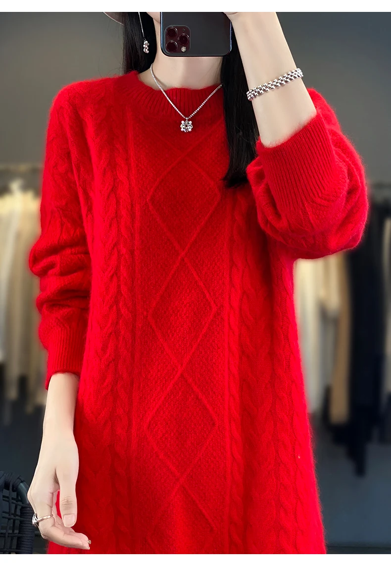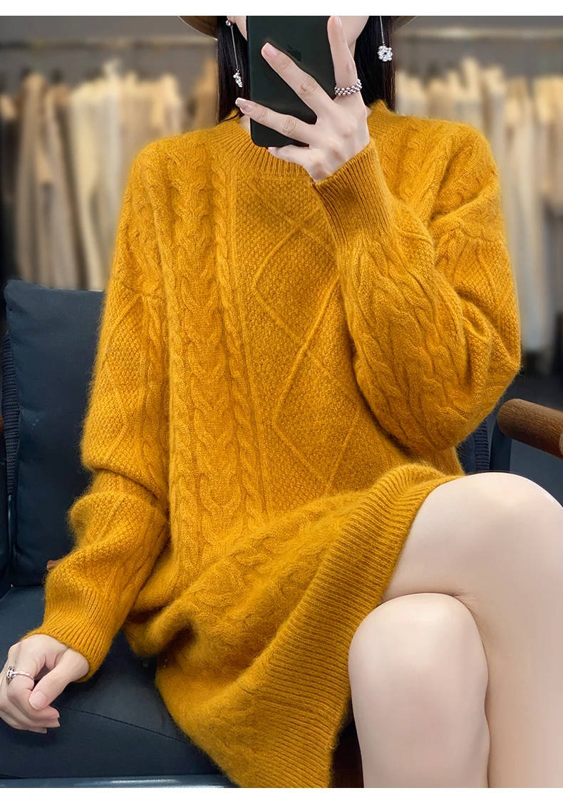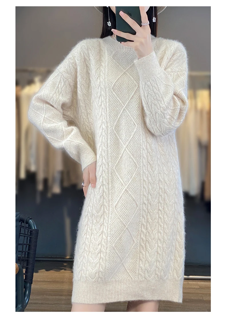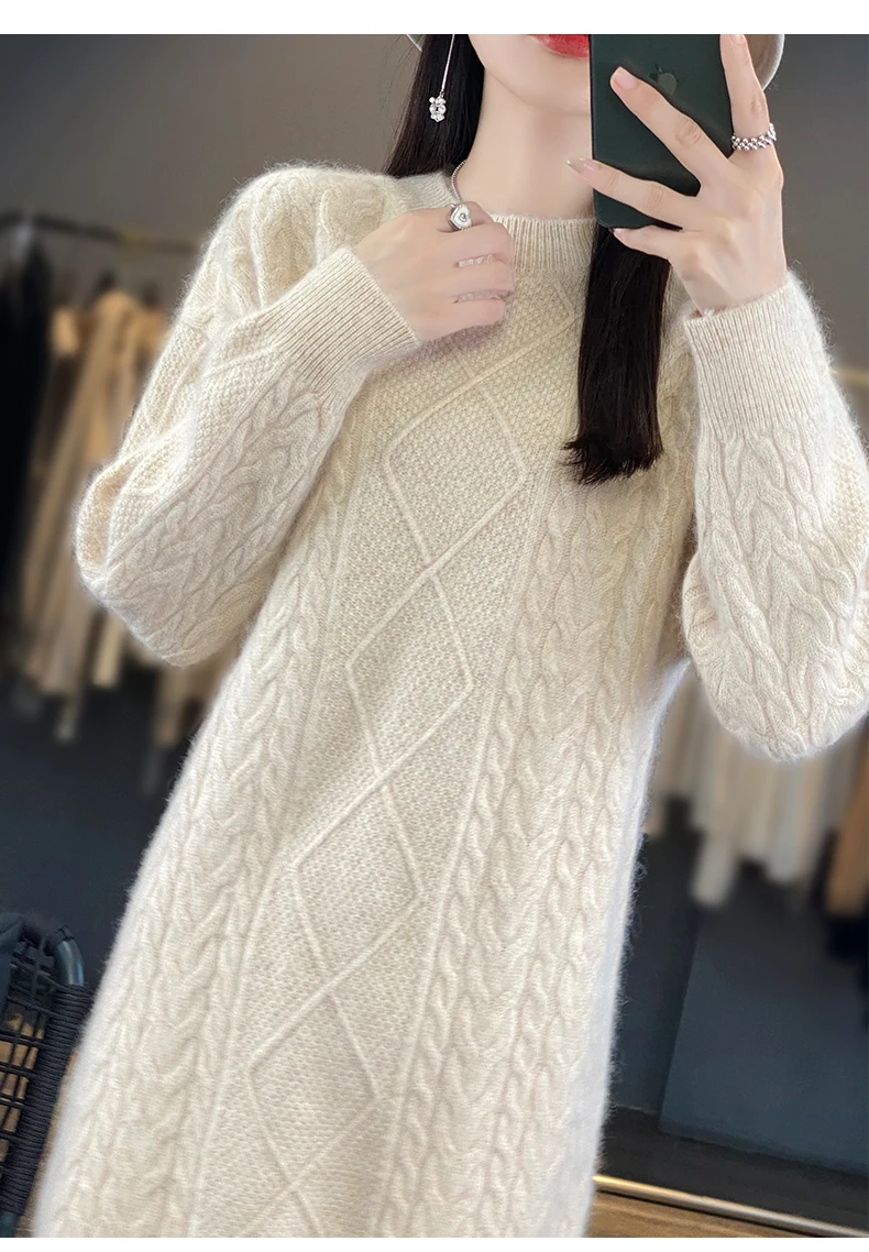 Be the first to review “DjzDsm Women’s 100% Mink Cashmere women’s round neck Thick warm solid color knit dress”