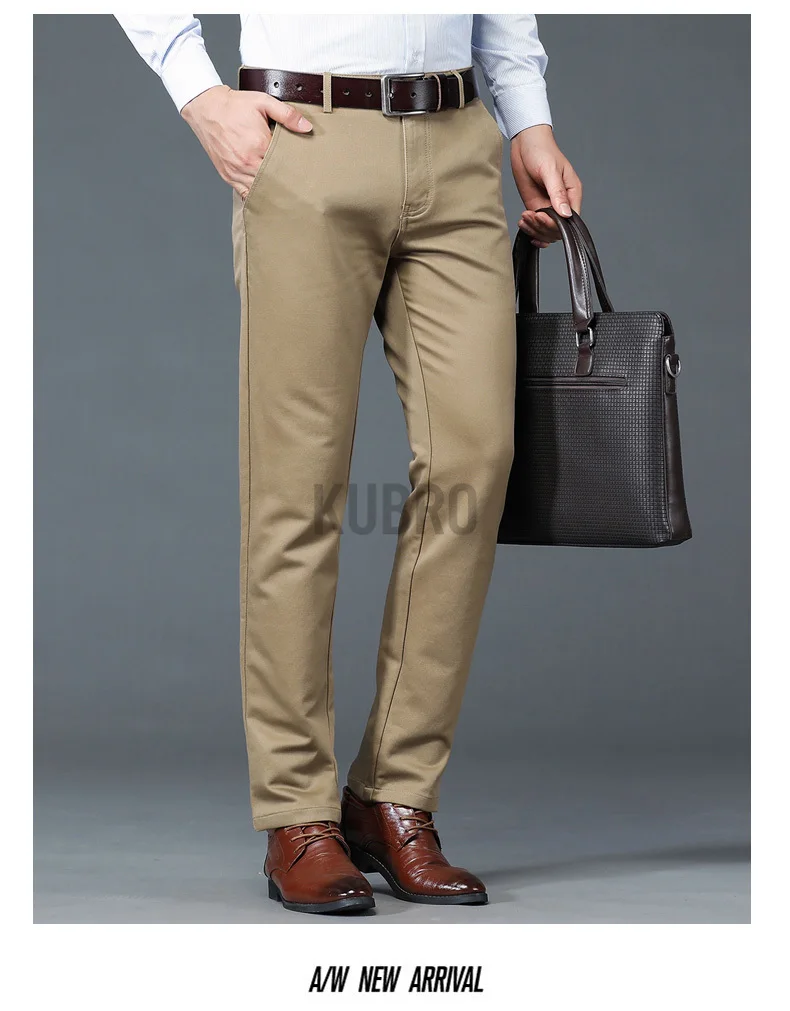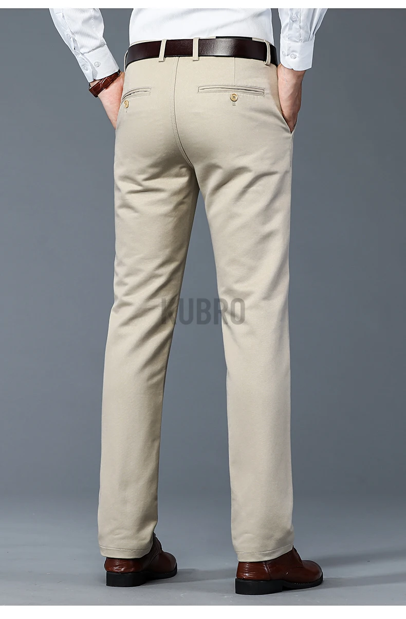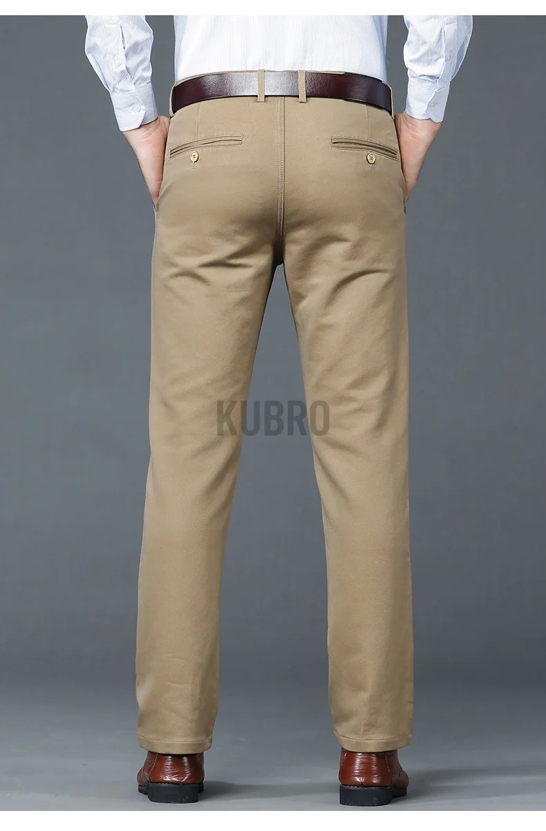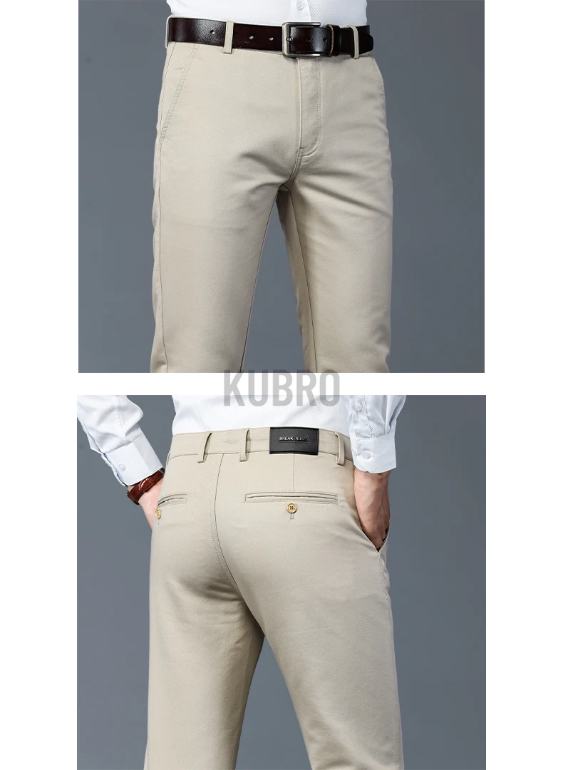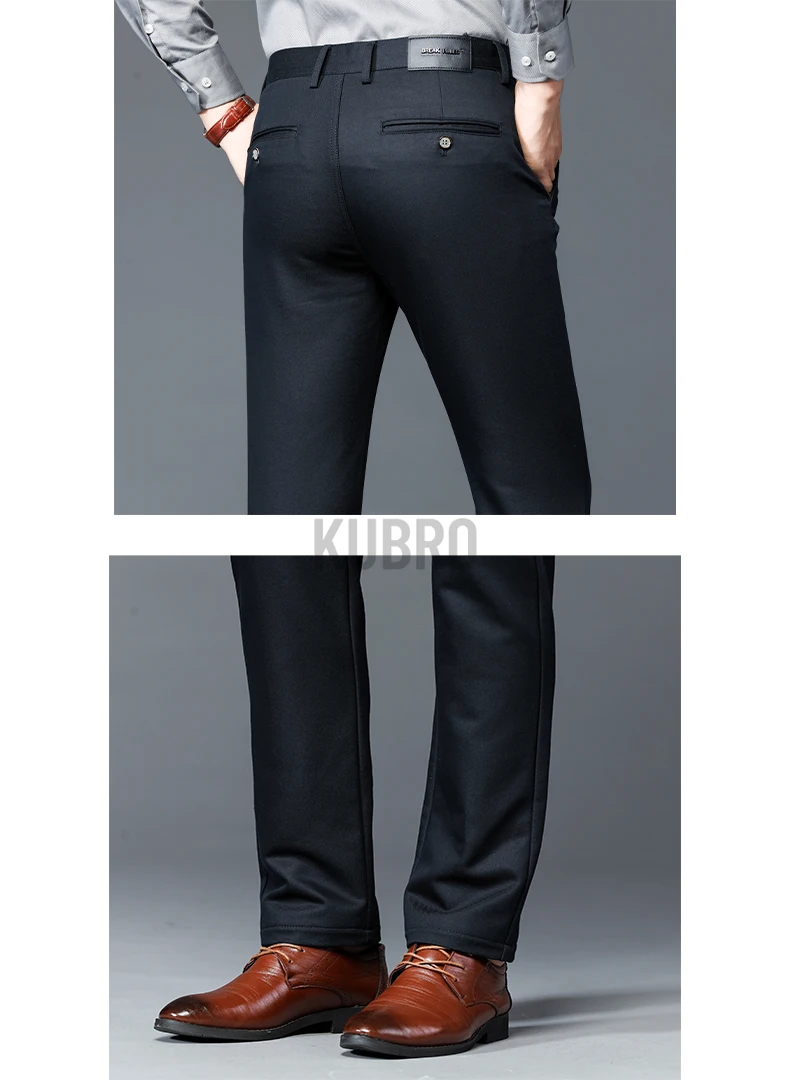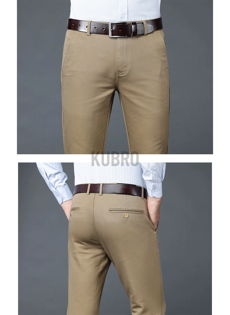 KUBRO Spring Autumn Brand Straight Suit Pants Men Business Fashion Khaki Black Blue Grey Solid Color Formal Trousers Large Size