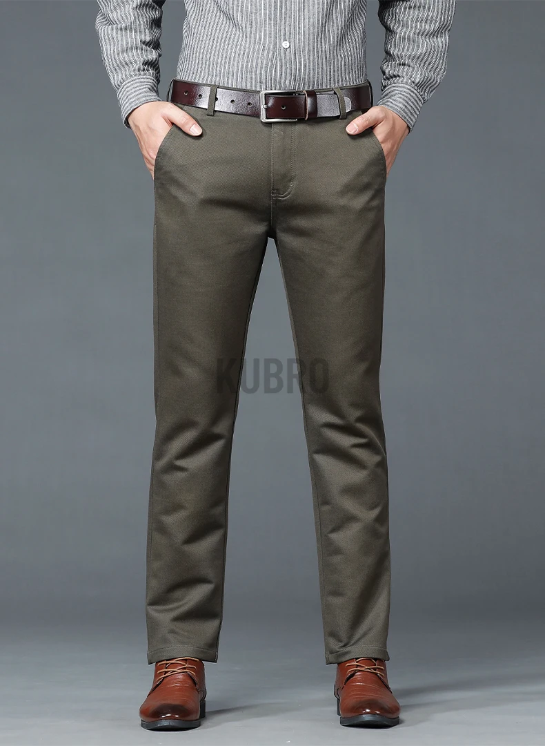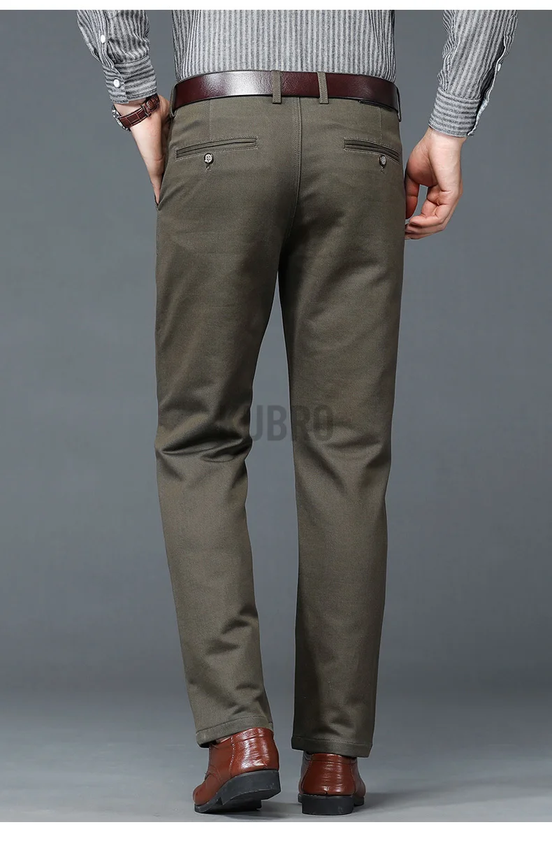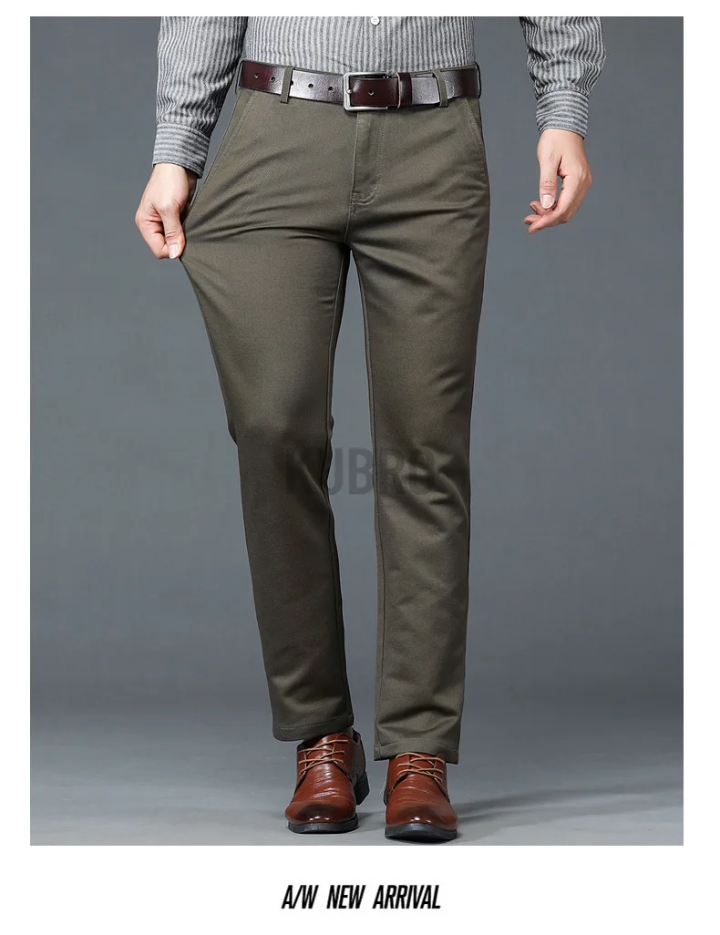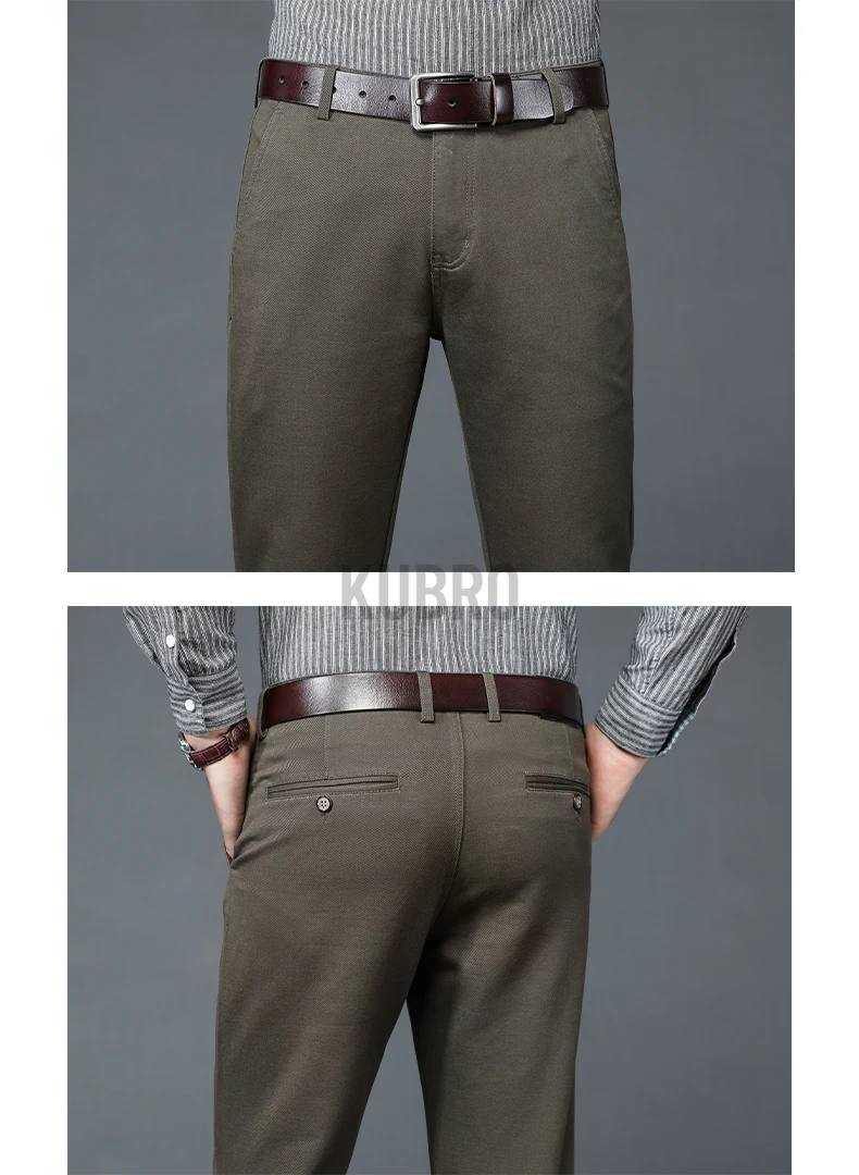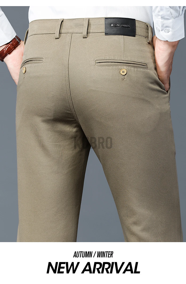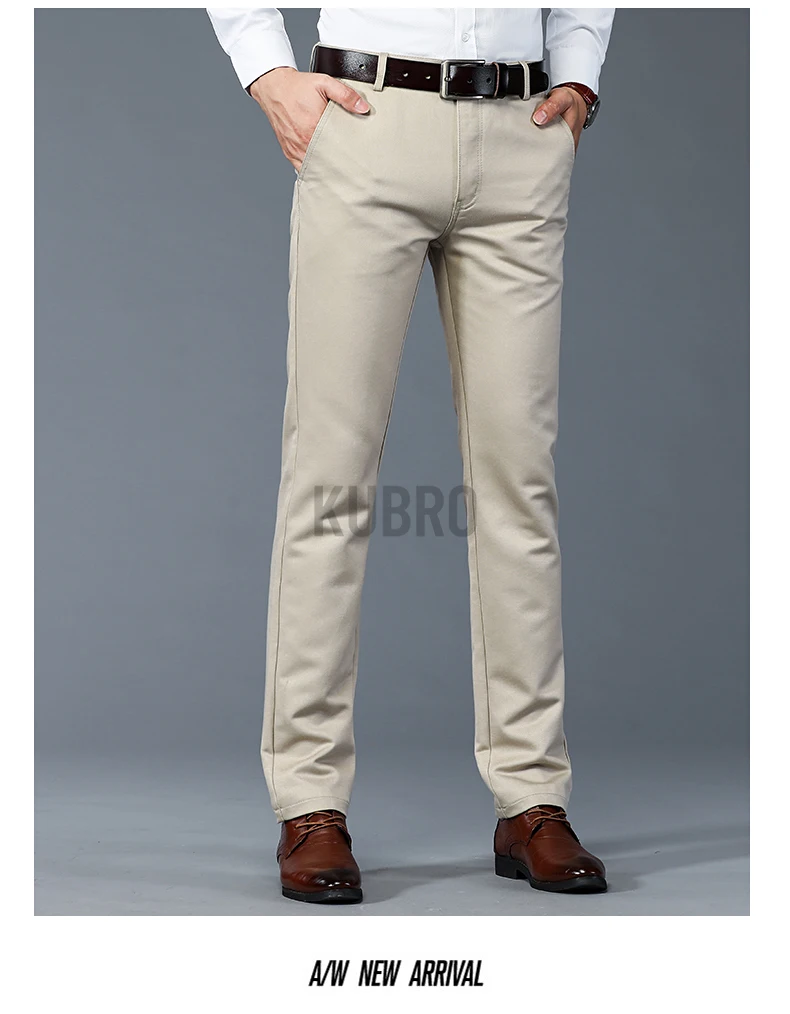 KUBRO Spring Autumn Brand Straight Suit Pants Men Business Fashion Khaki Black Blue Grey Solid Color Formal Trousers Large Size