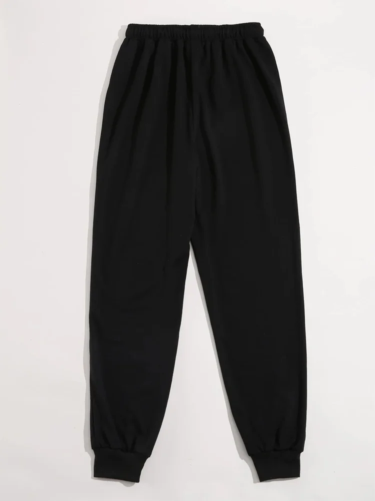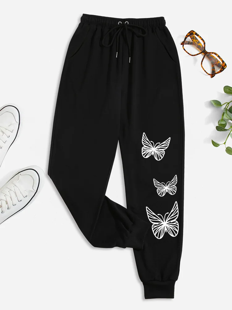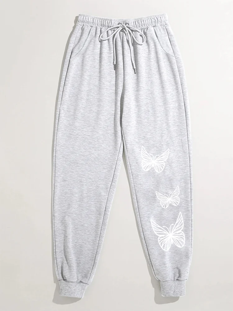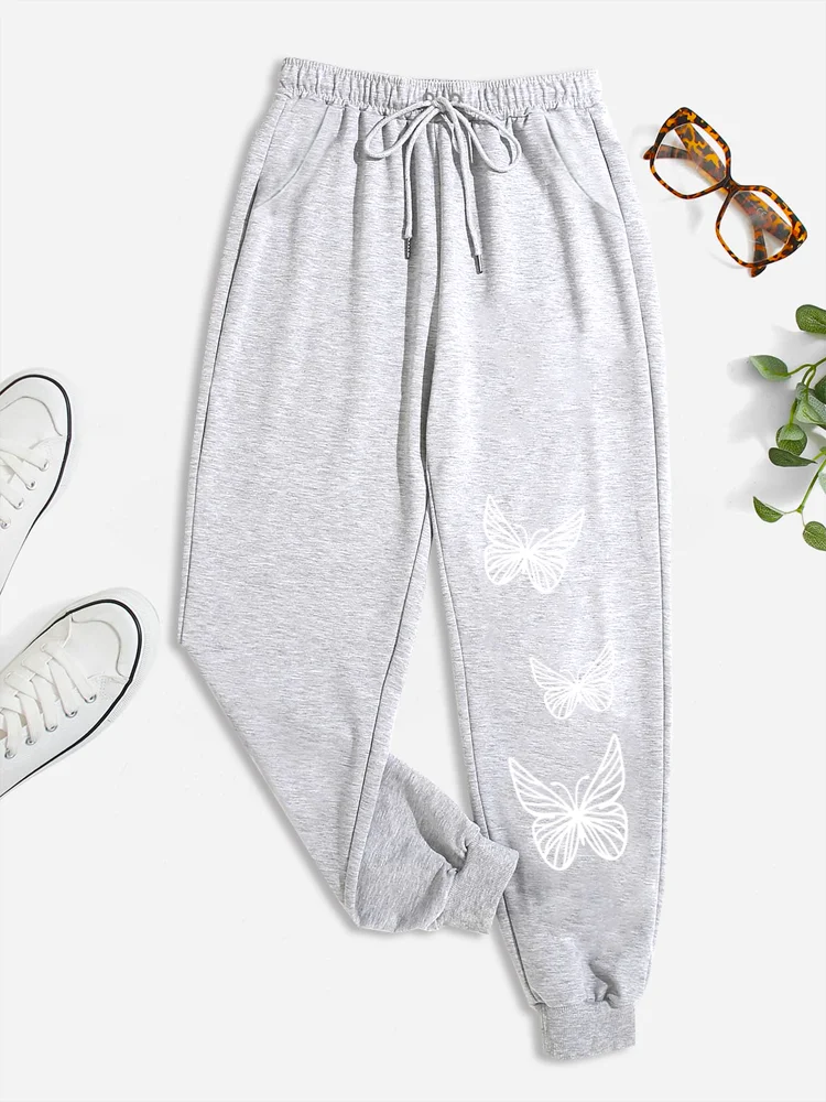 Leisure butterfly printed drawstring high waisted sports pants, casual daily pants, women’s clothing