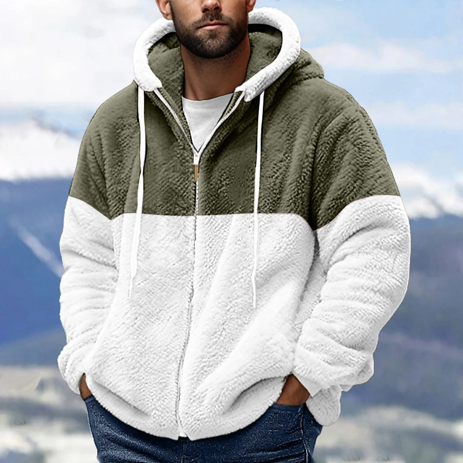 Men’s Personalized Casual Printing Long Sleeve Zipper Sweater Thick Cotton Suit Winter
