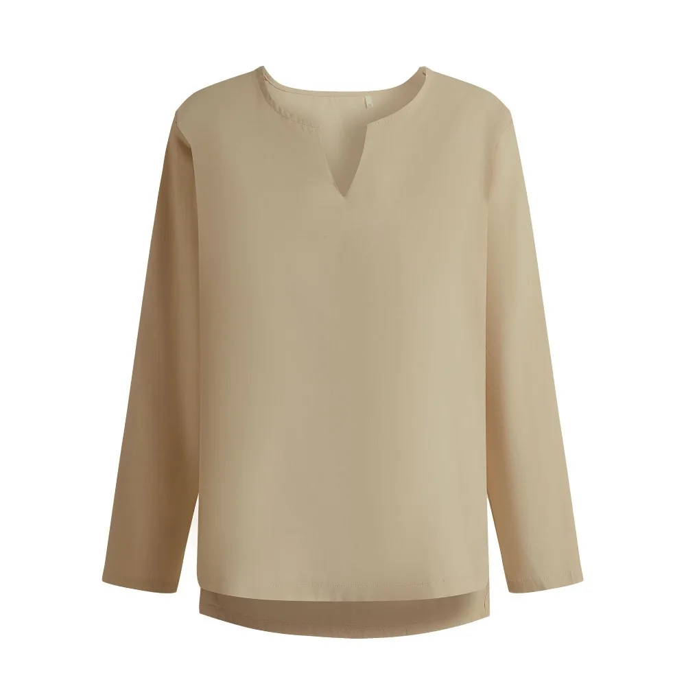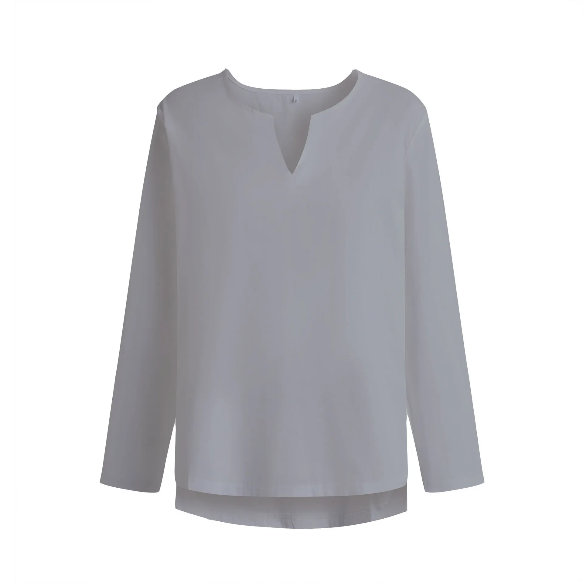 New Cotton and Linen Shirts Men’s Long Sleeve Loose Shirt Solid Color Casual Tshirt Vn-eck EU Size S-3XL Hawaiian shirt Men