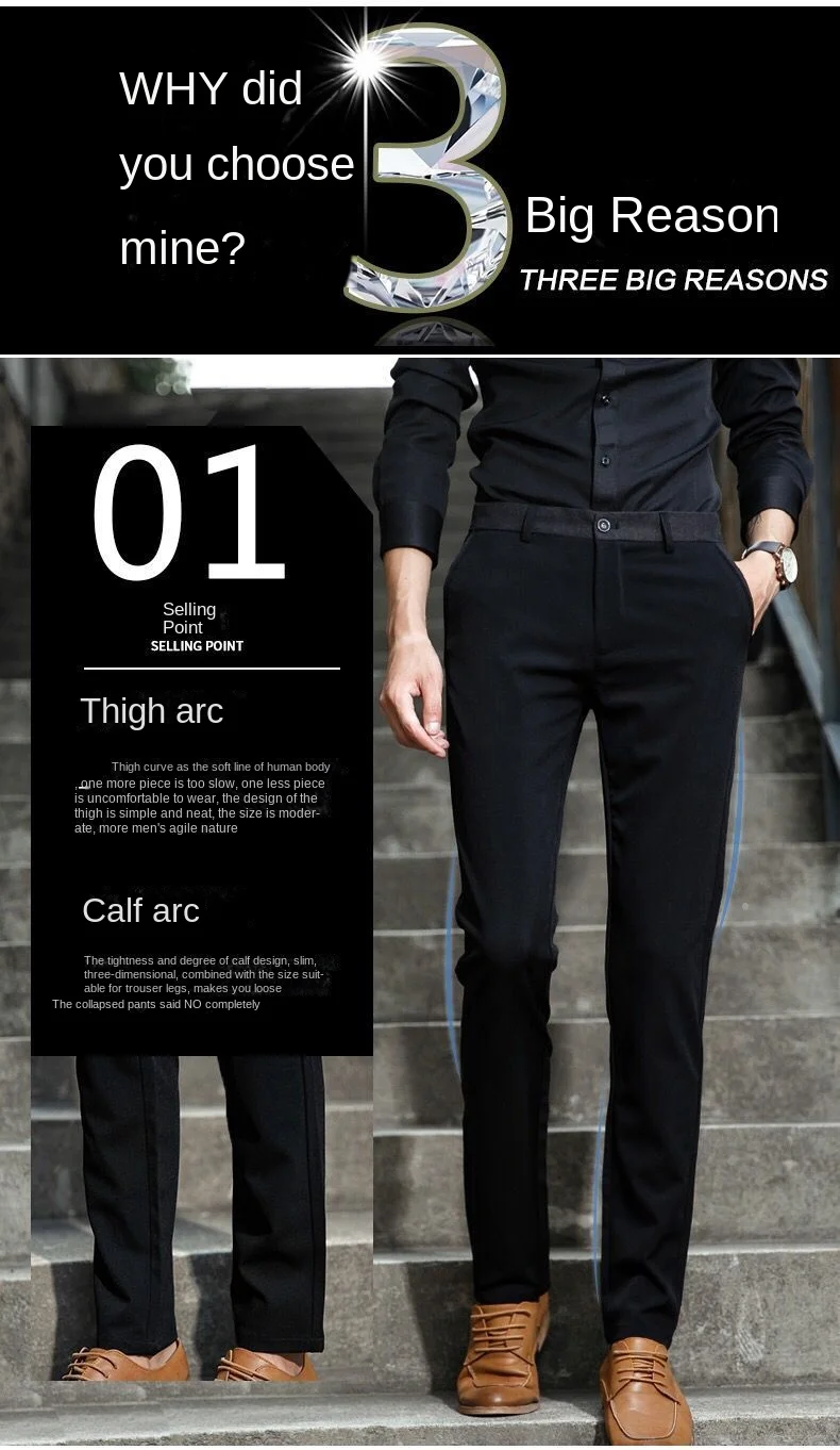 Stretch Suit Trousers for Men Office Pants Non-Ironing Slim Fit Bridegroom Suits Wedding Business Black Suit Pants Men