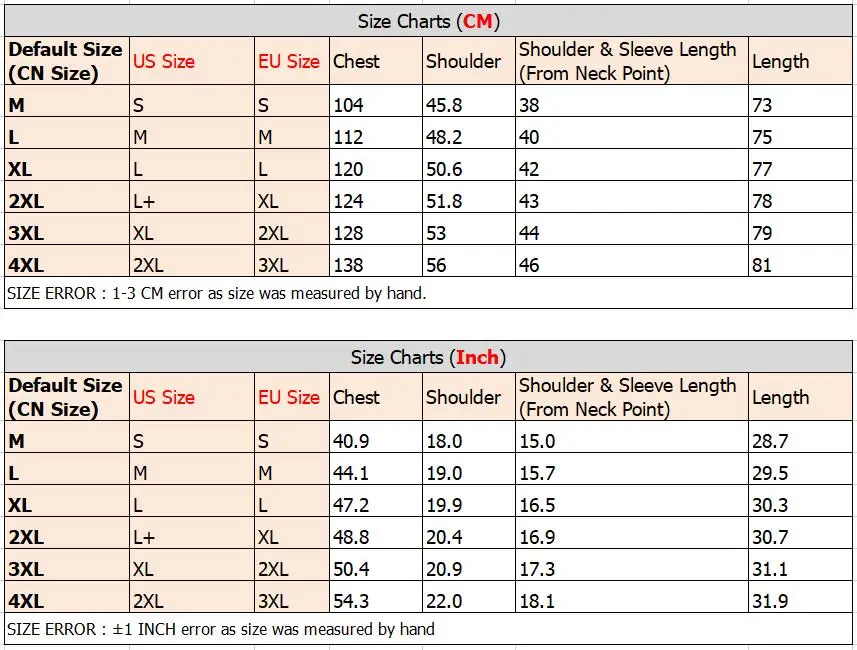1.Default Read size (tag size) is CN Size , please choose size Based on our Size Chart !!!