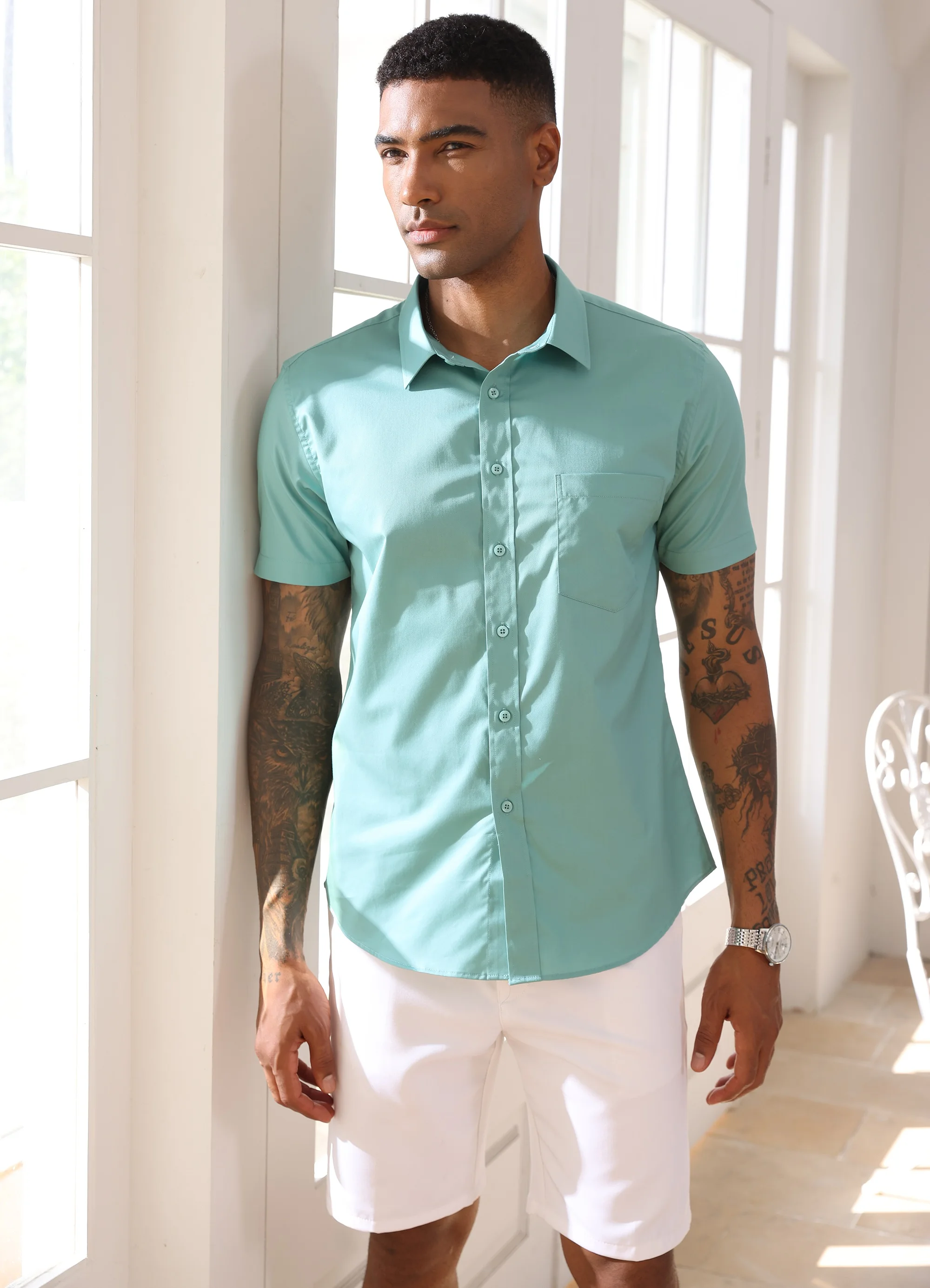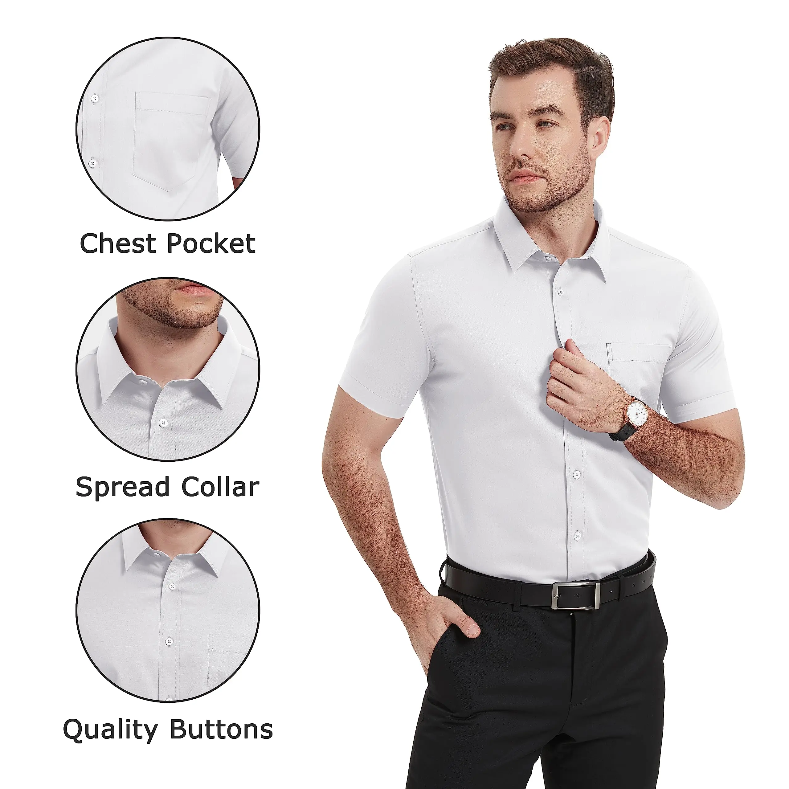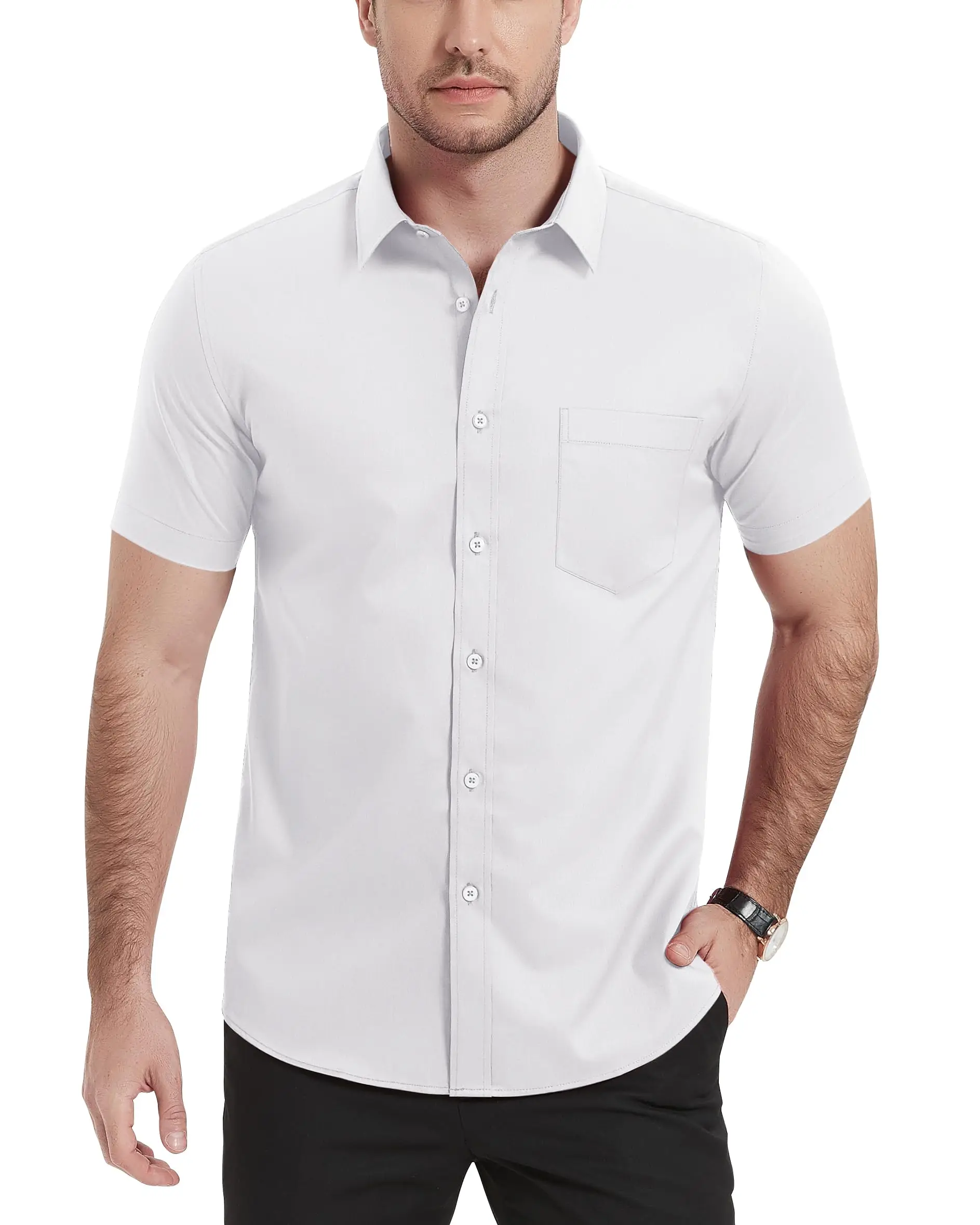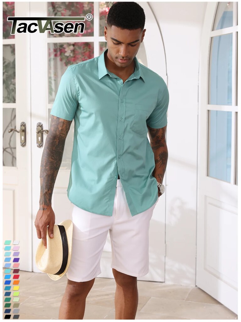 TACVASEN Breathable Short Sleeve Dress Shirts Mens Slim Fit Casual Business Button Down Formal Shirt W/ Chest Pocket Male Cloth