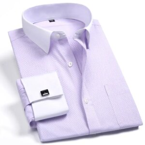 Men‘s Long Sleeve French Cufflinks Dress Shirt Business Formal Office Regular Fit Solid Color Social Smart Casual Shirt For Man