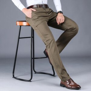 New Men’s Spring Autumn Fashion Business Casual Long Pants Suit Pants Male Elastic Straight Formal Trousers Plus Big Size 28-42