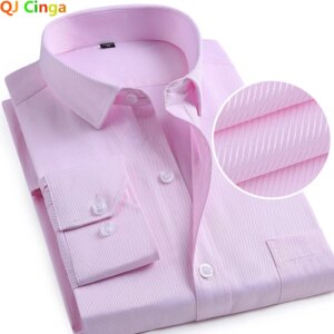 Pink Shirt For Men Oversize Long Sleeve Slim Fit Casual Dress Shirts Four Seasons Cotton Oxford New Fashion Korean Men Clothing