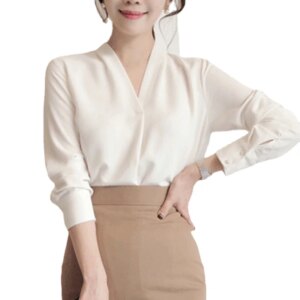 2023 Korean Style Deep V-neck OL Loose Women Tops Summer Long Sleeve White Shirt Office Lady Solid Chiffon Blouse Female 9382 50