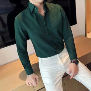 2023 Spring New Waffle Long Sleeve Shirts British Style High-End Fashion Casual Dress Men’s Business Slim Fit Luxury Shirt S-3XL