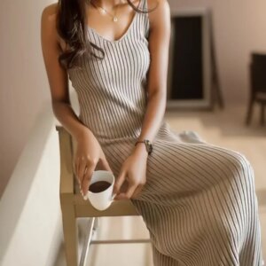 Women Knitted Slimming Bodycon Dress Soft Straps Dress Casual Ribbed Knitted One Piece Holiday A-Line Midi Dress Women 2024