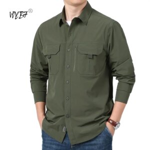 2024 New Autumn And Summertime Travel StylePocket Shirt For Men Solid Color Slim Casual Men LongSleeve Running Movement Shirts
